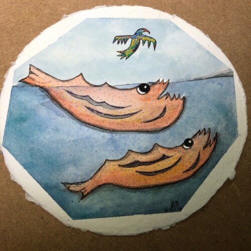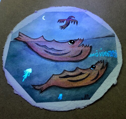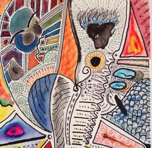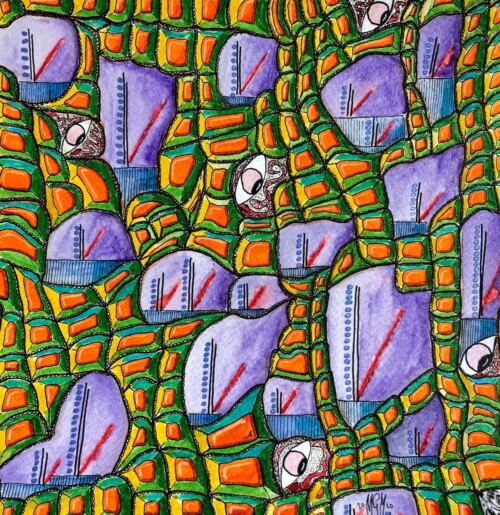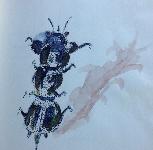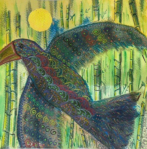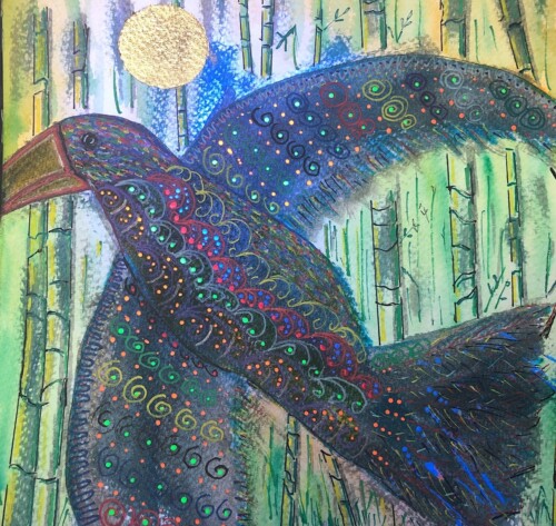 Lo que empezó siendo una aguada de tinta china resulto en un pequeño cuadro con mucho detalle y trabajo que está en manos de mi amigo y admirado pintor Augusto Mendieta ( Guto Ajayu),
