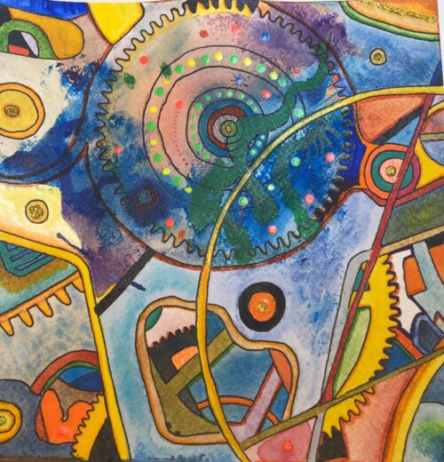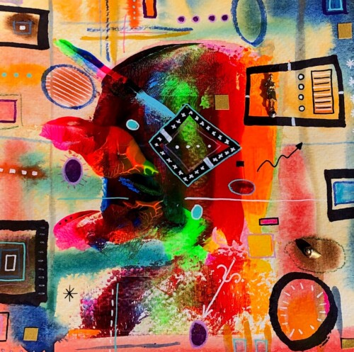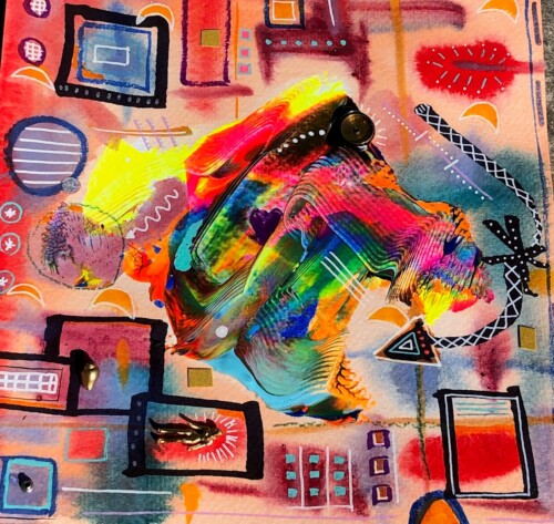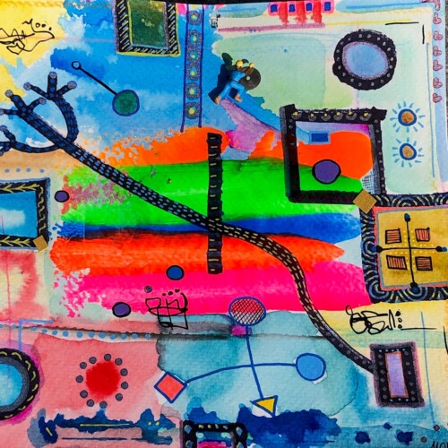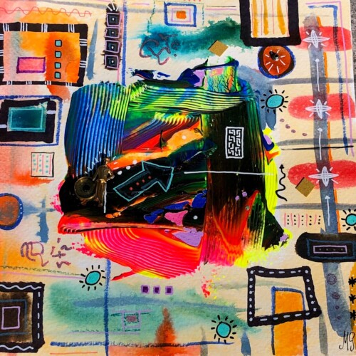 Explorando las posibilidades de la acuarela en una abstracción de formas rectangulares