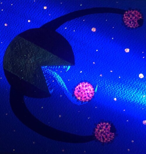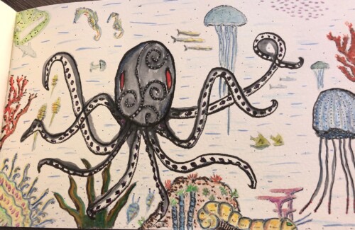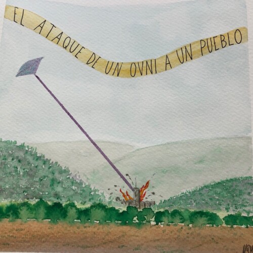 La técnica mixta y la no planificación previa de algunos dibujos dan como resultado paisajes imaginarios, que evocan algunas películas de ciencia ficción con distintas lunas en su cielo.
