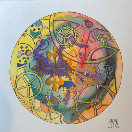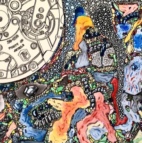 The Patek relalizada en un papel gofrado e iluminado enteramente en acuarela me supuso muchas horas de trabajo, muchas veces con una lupa en una mano y el pincel en la otra.