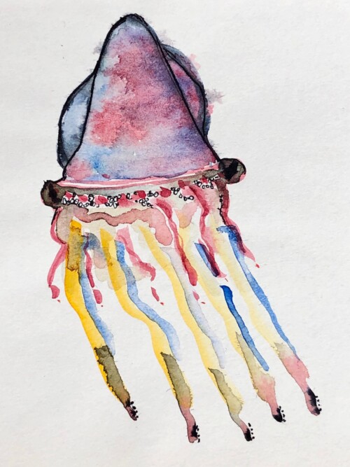 Una interpretación de una medusa. Este ser mitológico, era considerado por los romanos como un amuleto de protección y ha sido profusamente utilizado incluso en construcciones como la villa romana de rio verde en Marbella,