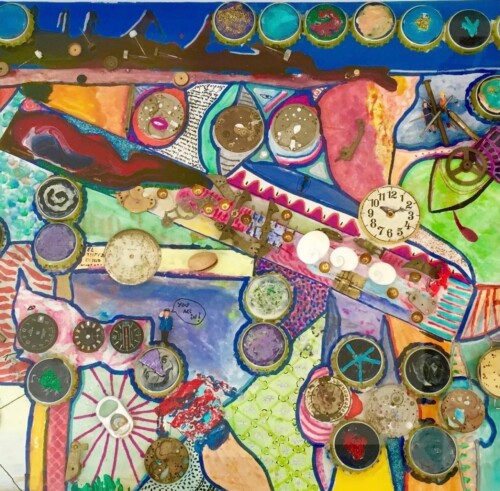 Realizada con chapas de la famosa cerveza mexicana que en España recibió el nombre de Coronita en vez de Corona como se conoce en todo el mundo, ya que el nombre «Corona» estaba registrada para una bebida hasta que han logrado un acuerdo, sin embargo, seguimos pidiendo una «coronita»…