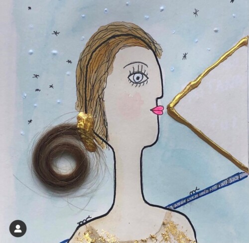 Espero que la joven propietaria de esta obra la conserve y amplíe su colección.Es una combinación de dos laminas de papel con estilos distintos…no pasa desapercibido.